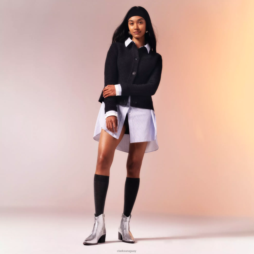 ¡Las botas vaqueras están de moda y también se están abriendo camino en nuestros guardarropas de verano! Bienvenido Elder Rae: una nueva silueta inspirada en detalles de diseño occidental. En cuero plateado brillante, costuras artesanales y punta puntiaguda hacen eco de un estilo clásico, mientras que la suave amortiguación bajo los pies y el tacón en bloque con efecto apilado apoyan cada paso o movimiento de baile.